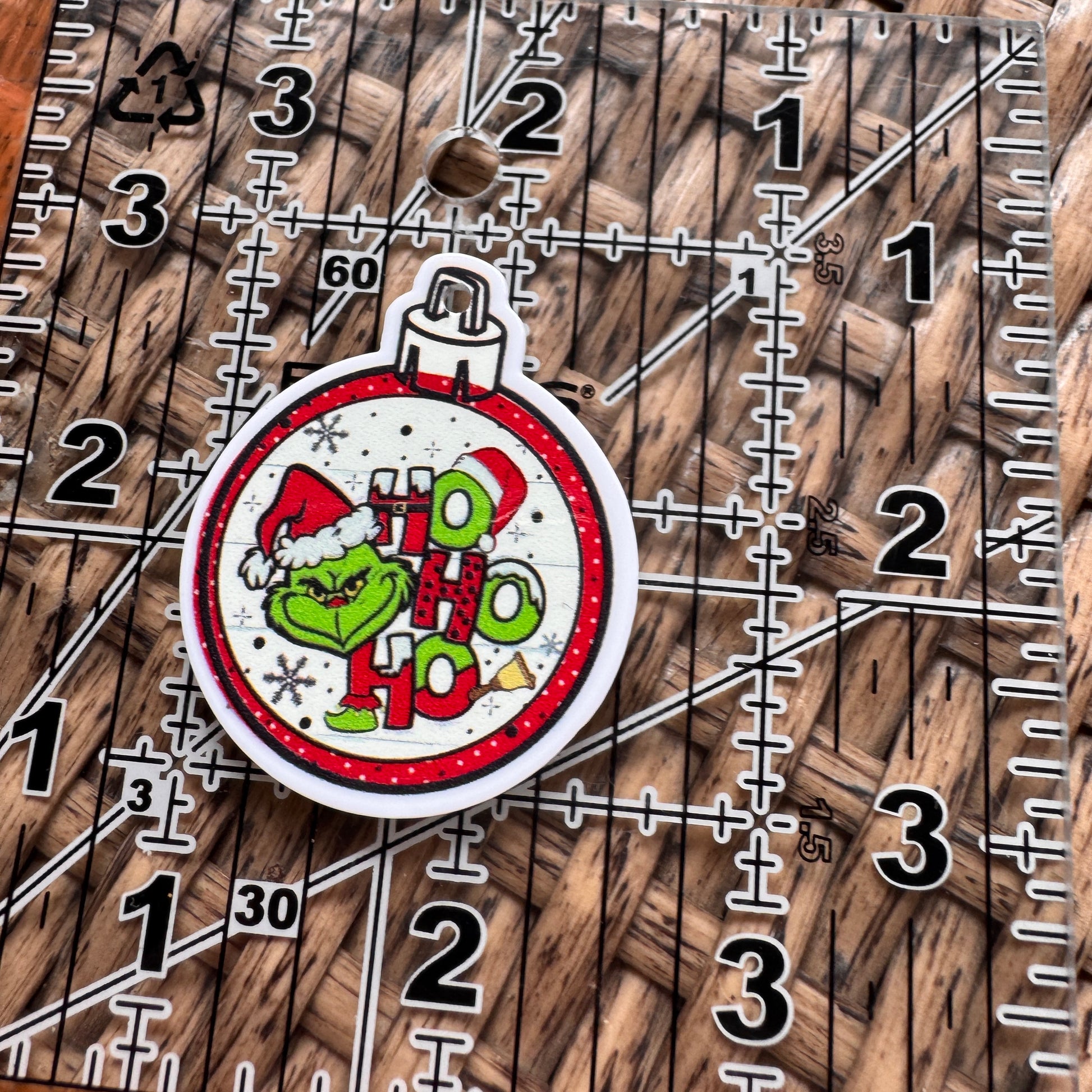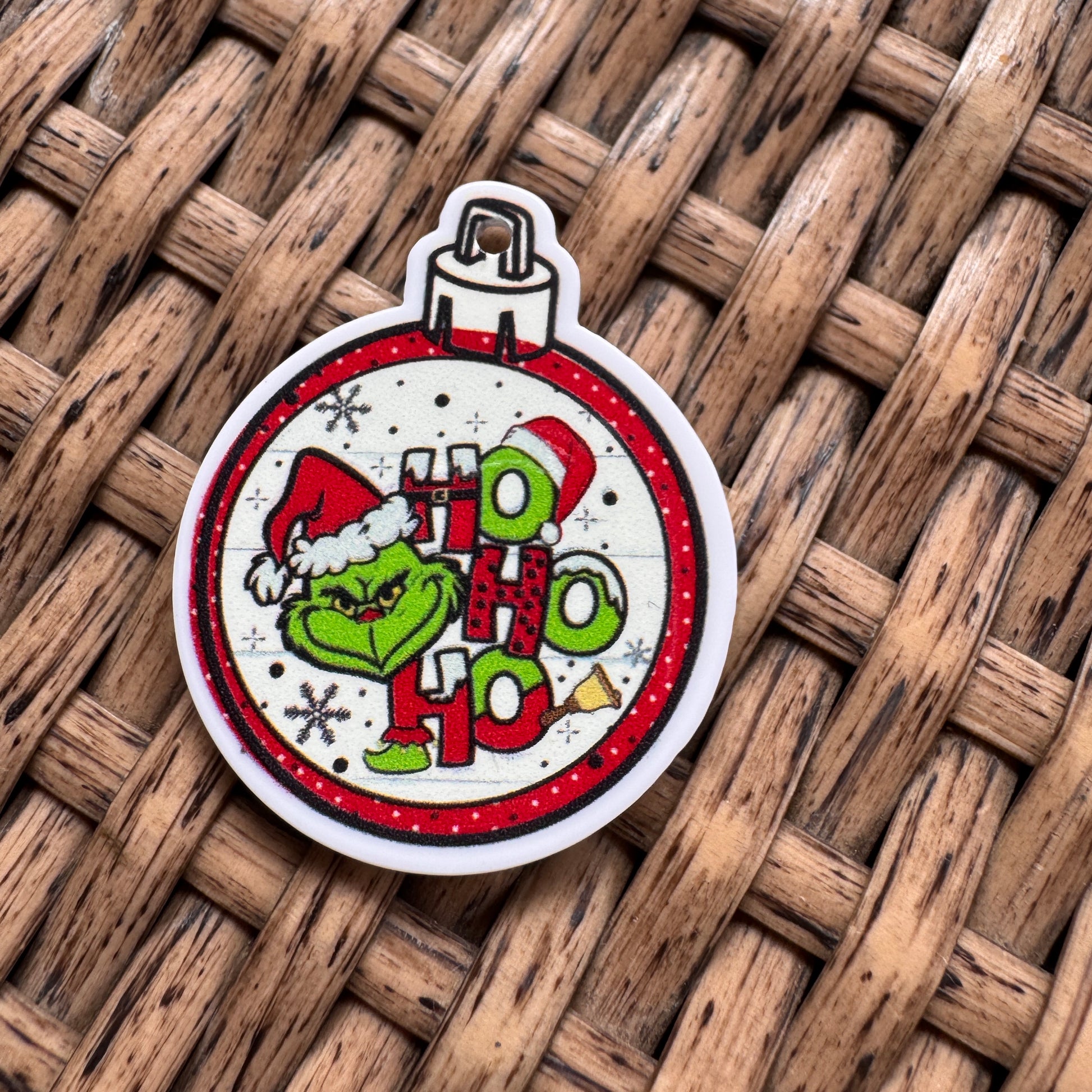 Acrylic Flatback, Planar, Cabochon, Single Pc - Grinch Ornament (Hole in Top)