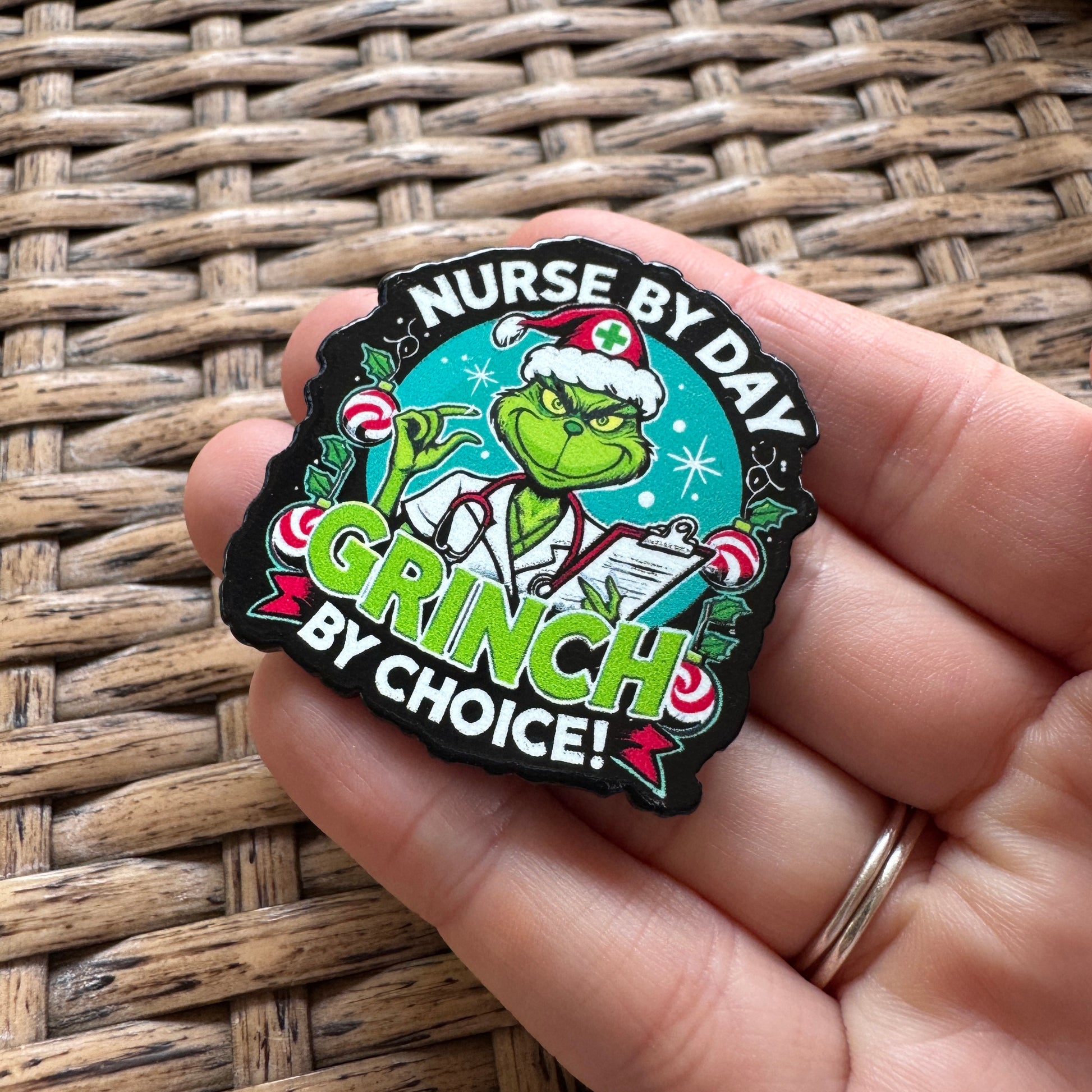 Acrylic Flatback, Planar, Cabochon, Single Pc -Grinch Nurse