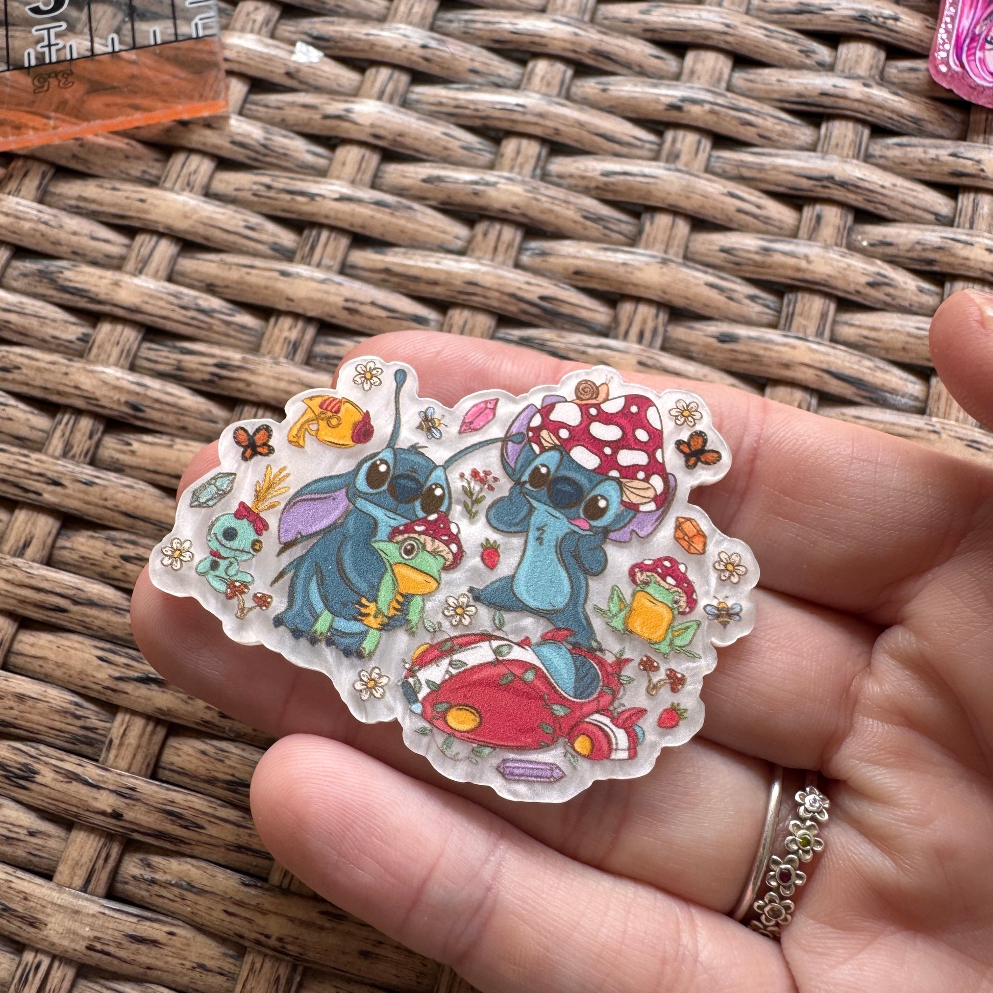 Acrylic Flatback, Planar, Cabochon, Single Pc - Stitch and mushrooms