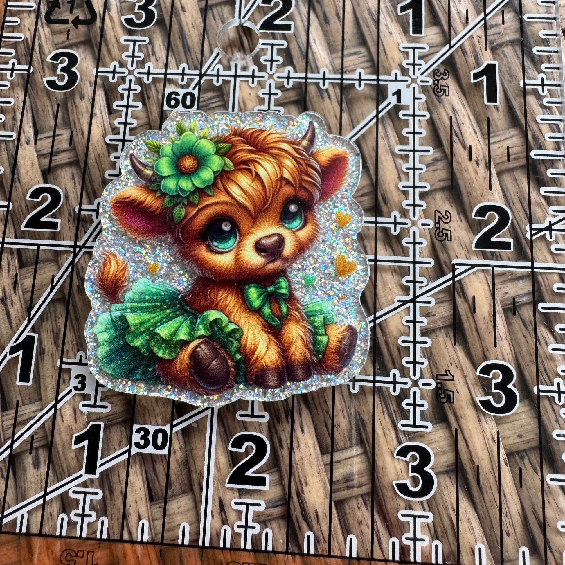 Cute Cow in Green Dress Flatback, Single Pc.