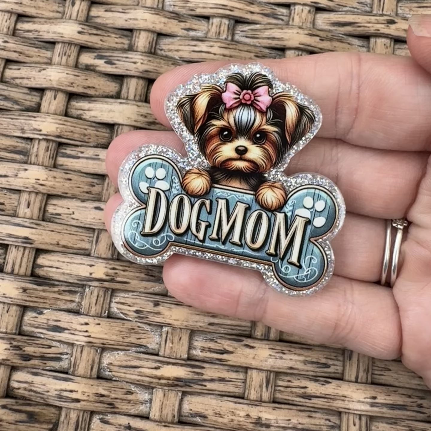 Dog Mom, Glitter Flatback, Planar, Cabochon, Single Pc