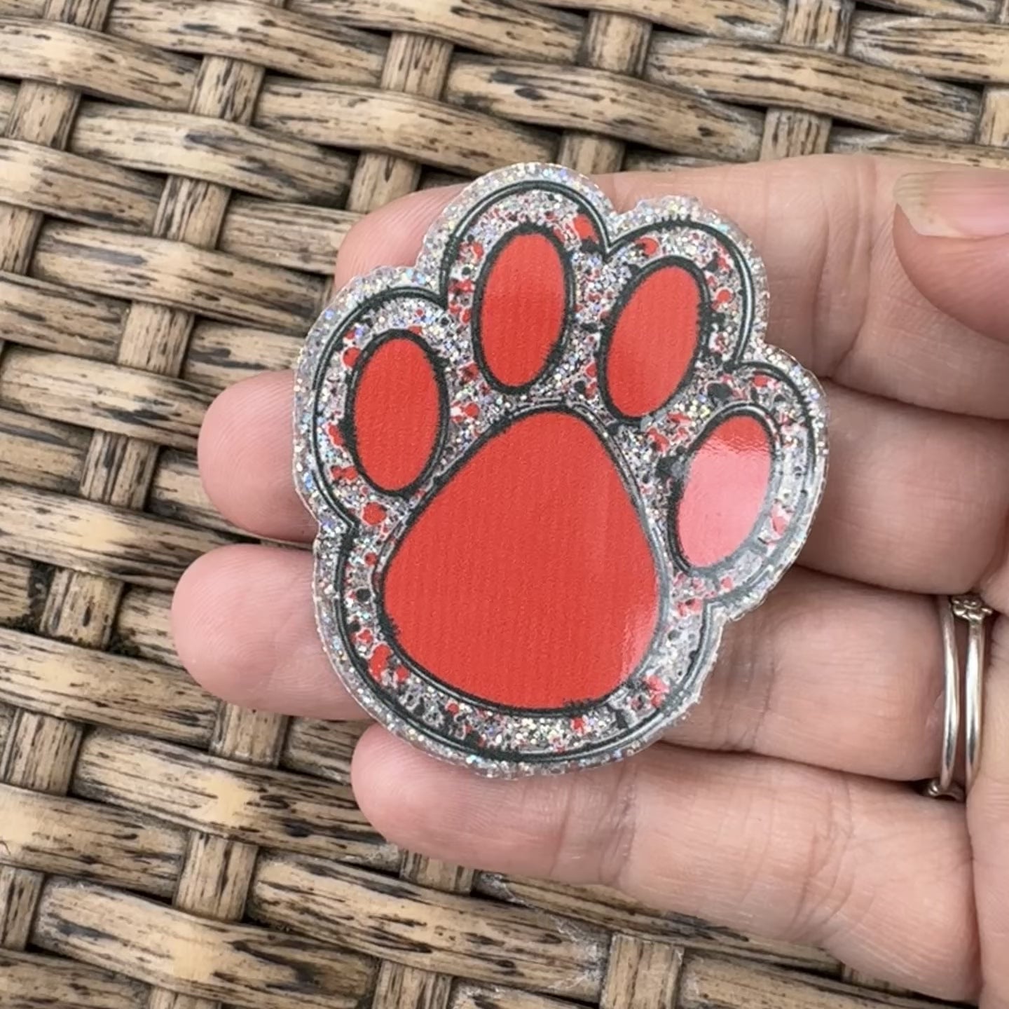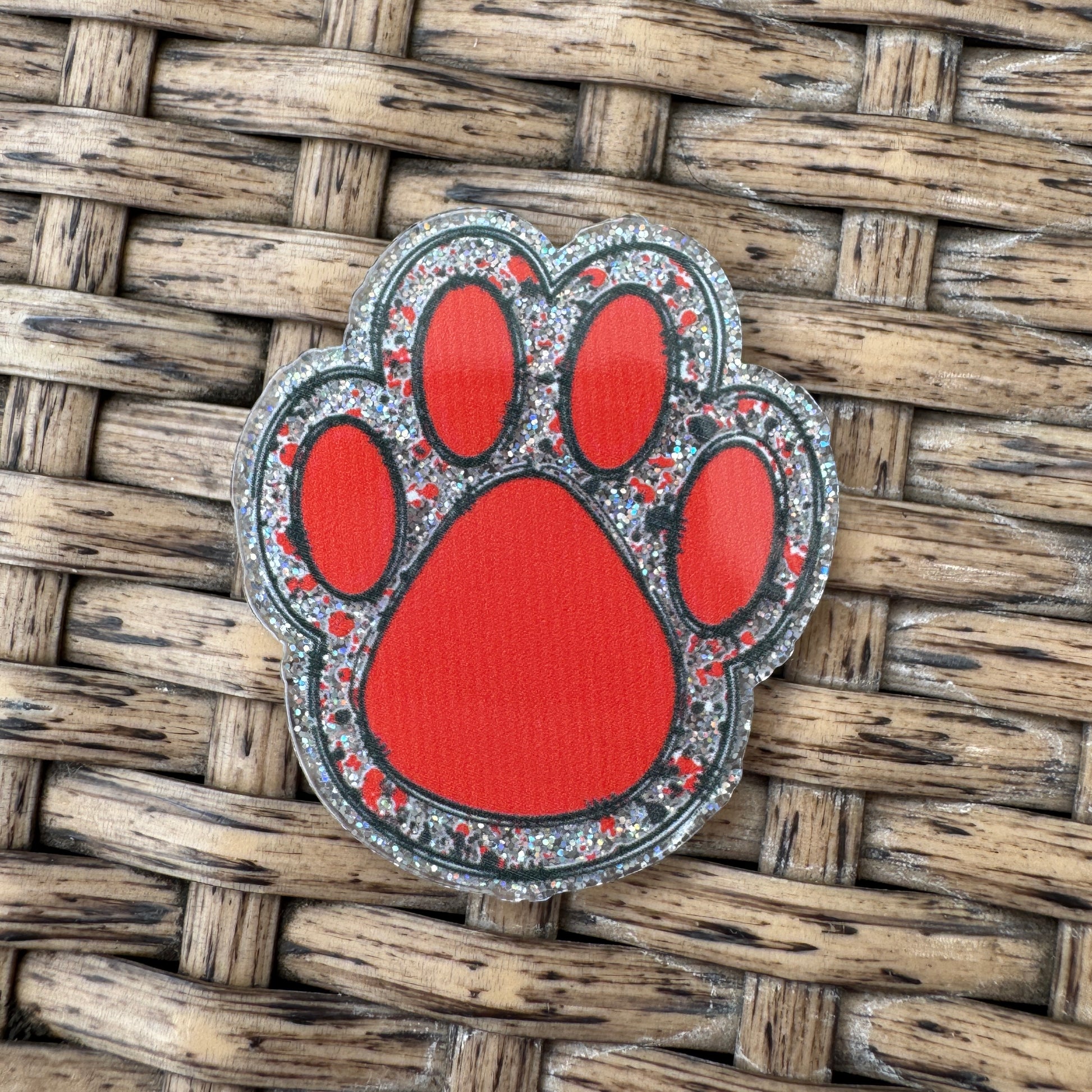 Red Paw Print, Glitter Flatback, Planar, Cabochon, Single Pc