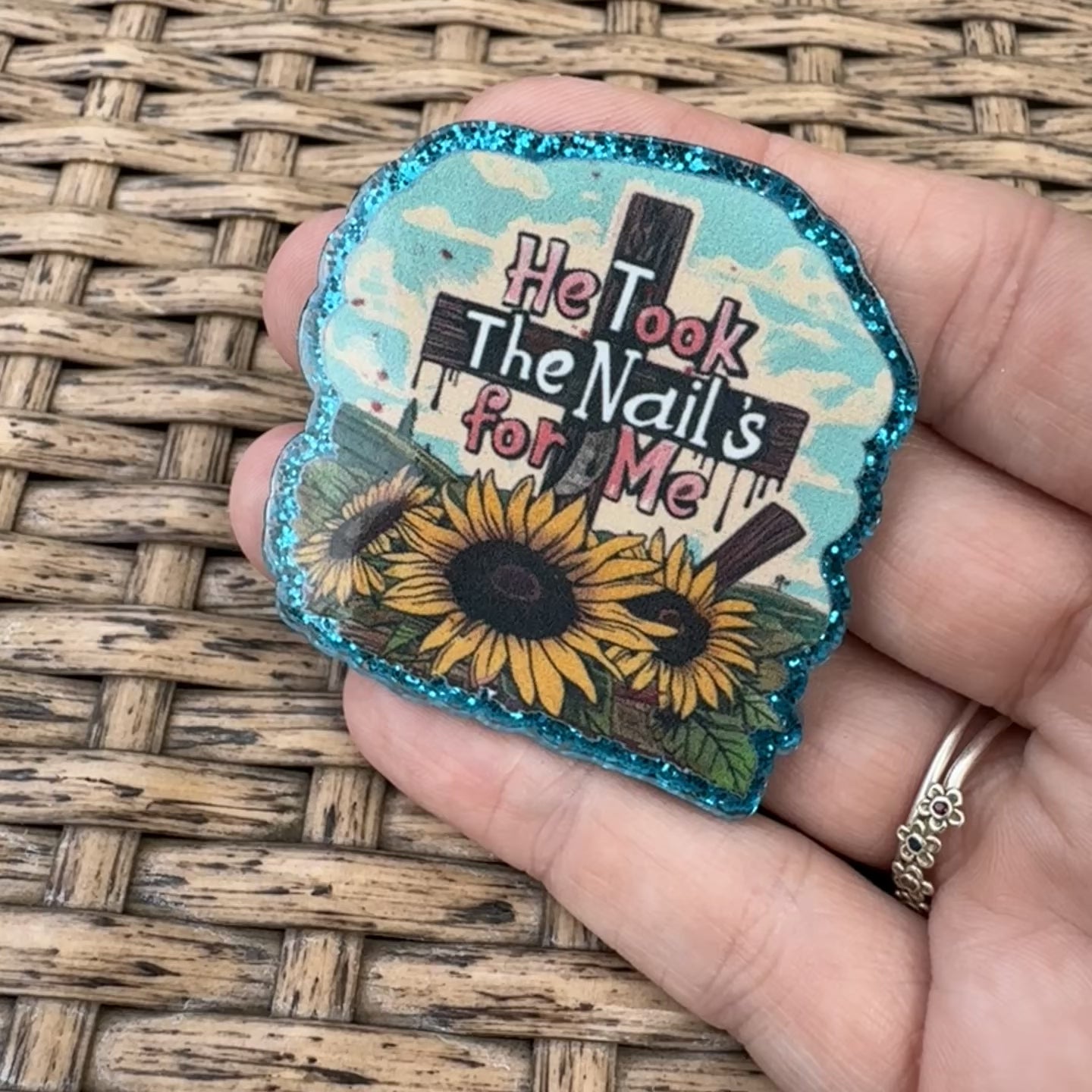He Took The Nail For Me, Cross, Sunflowers, Flatback, Planar, Cabochon, Single Pc