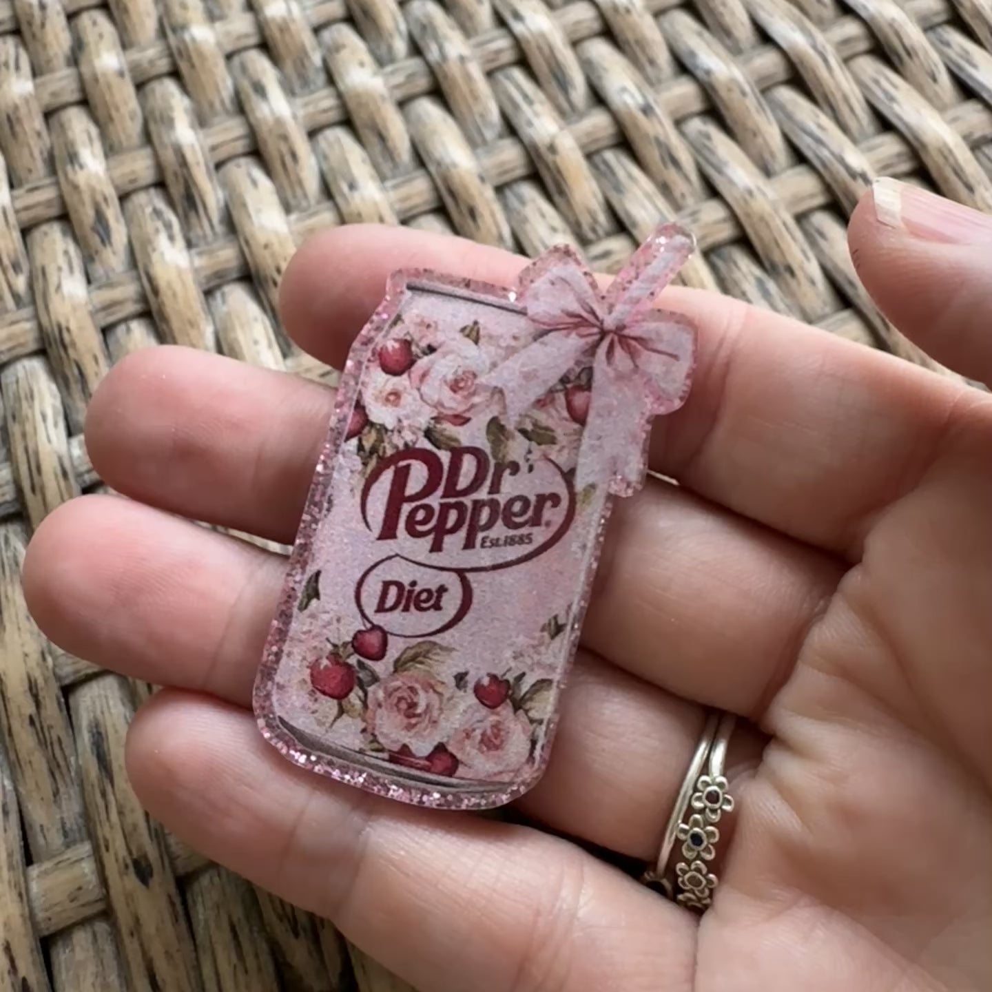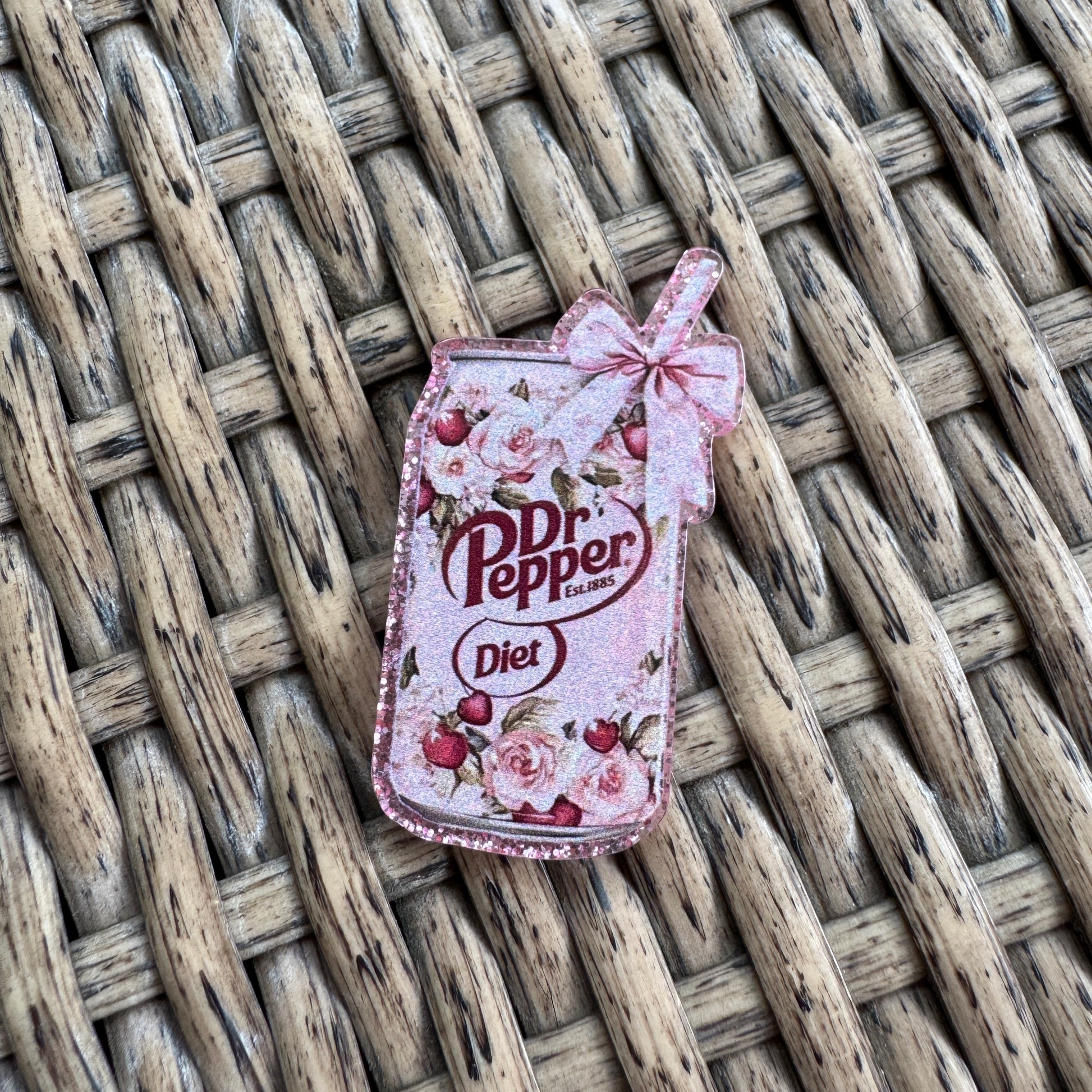 Diet Dr Pepper Glitter Flatback, Cheetah Print, Heart, Single Pc.