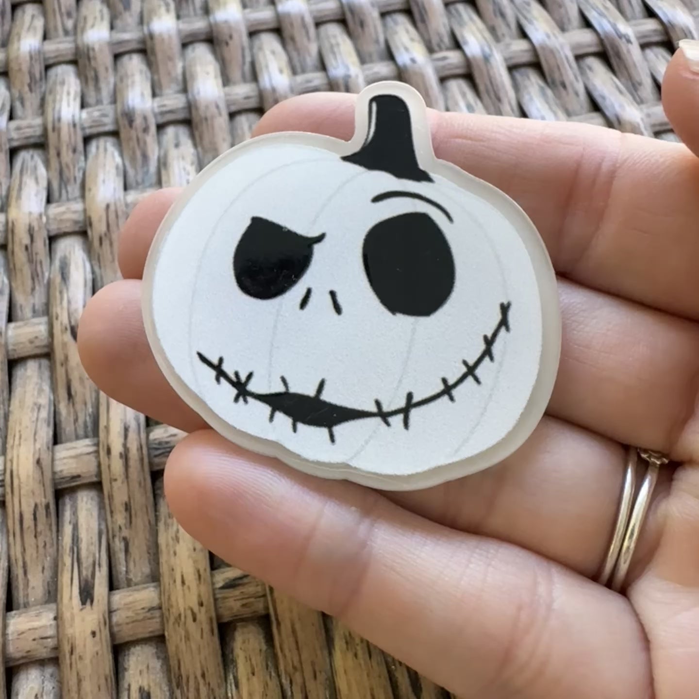 Glow in The Dark Jack Face Pumpkin Acrylic Flatback Planar, Cabochon, Single Pc.