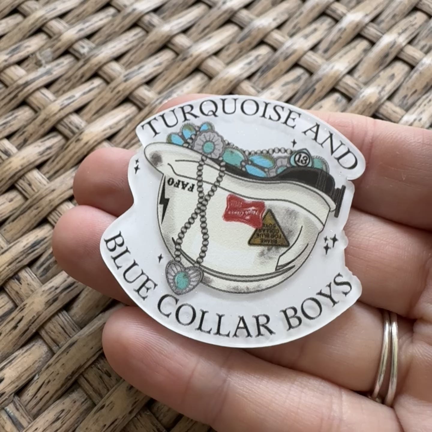 Turquoise and Blue Collar Boys, Glitter Flatback, Planar, Cabochon, Single Pc