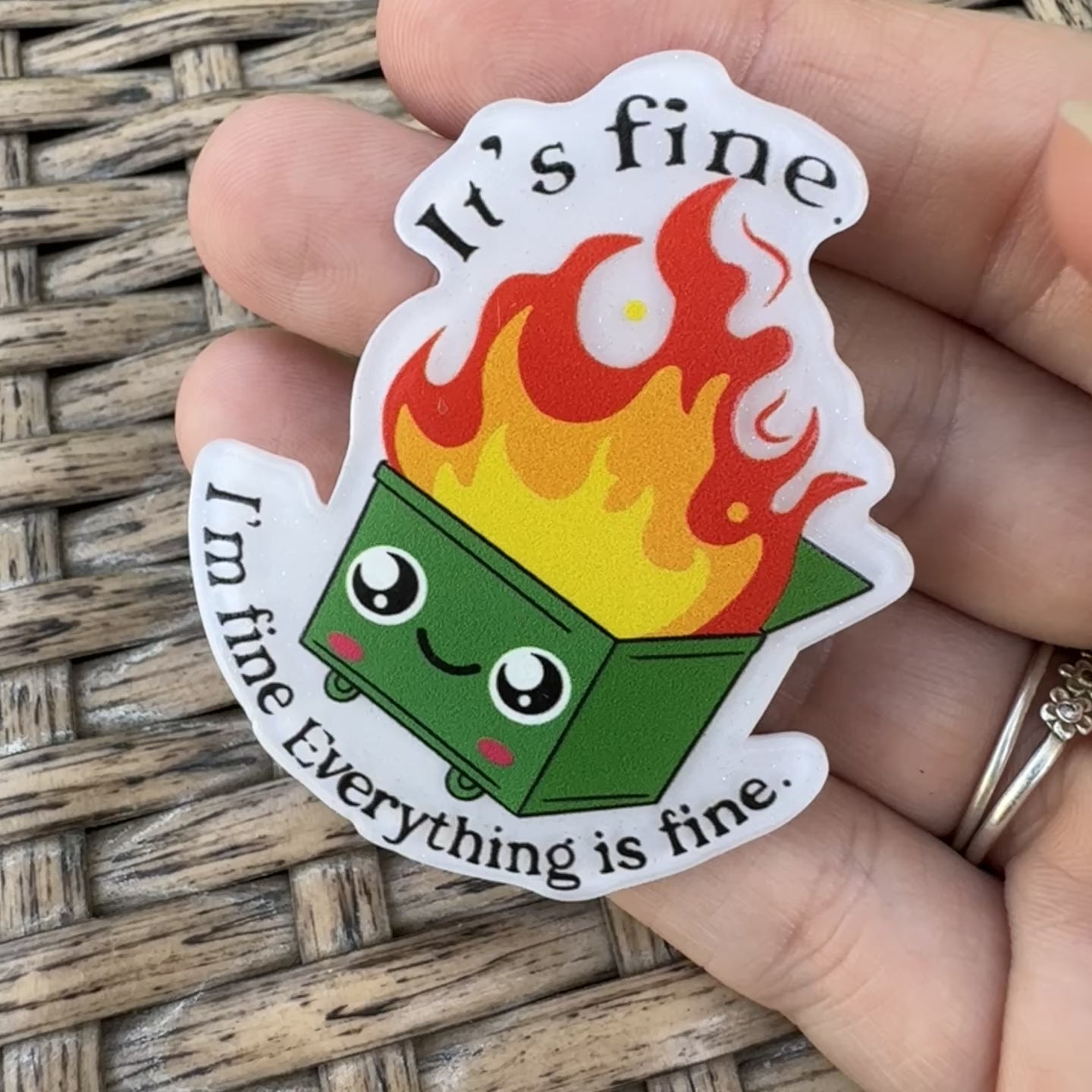 Humor - Dumpster Fire Flatback Planar, Cabochon, Single Pc.