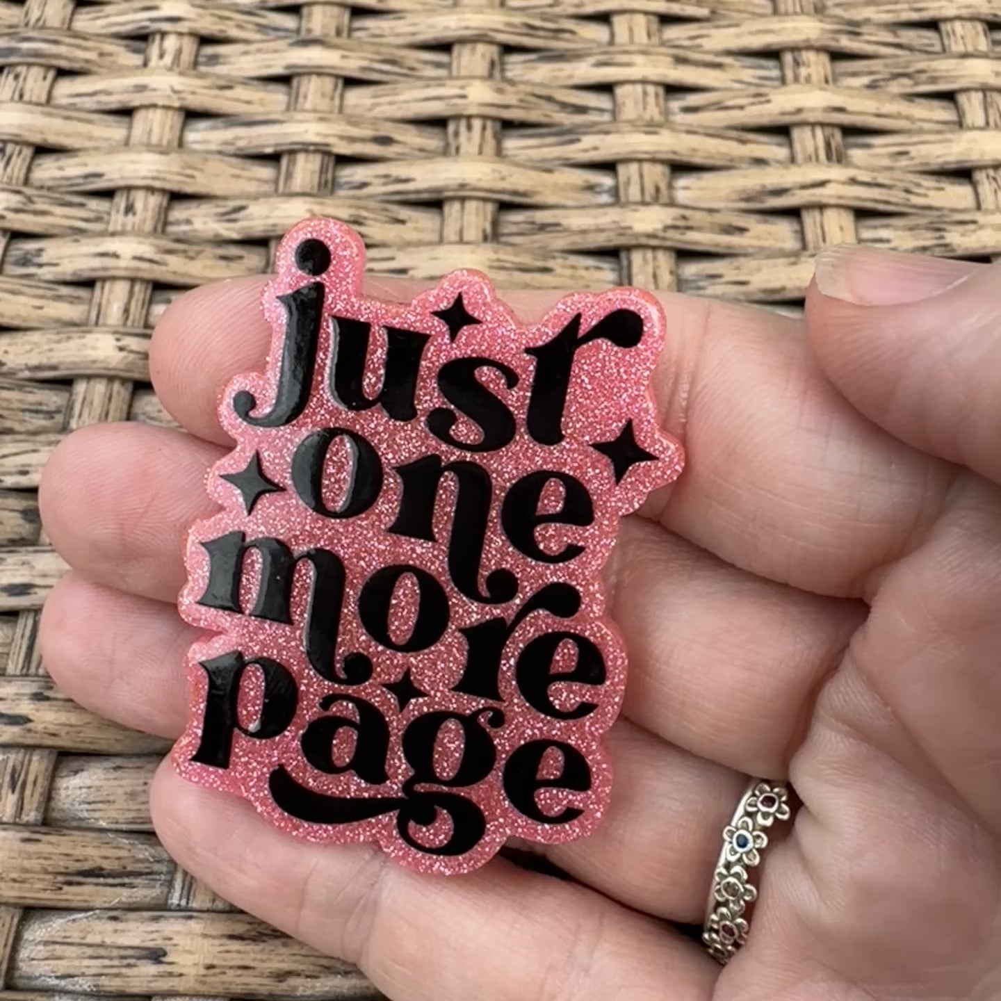 Just one More Page, pink, Glitter Flatback, Planar, Cabochon, Single Pc