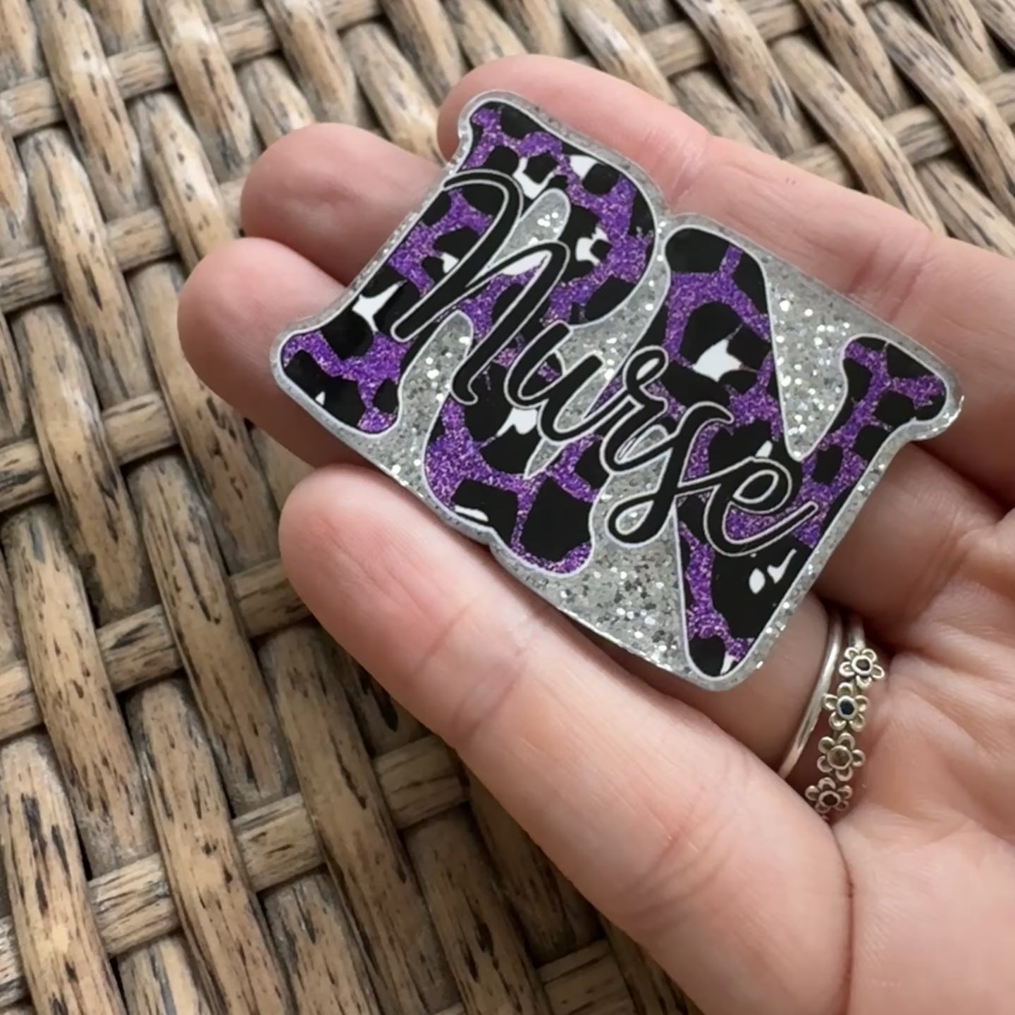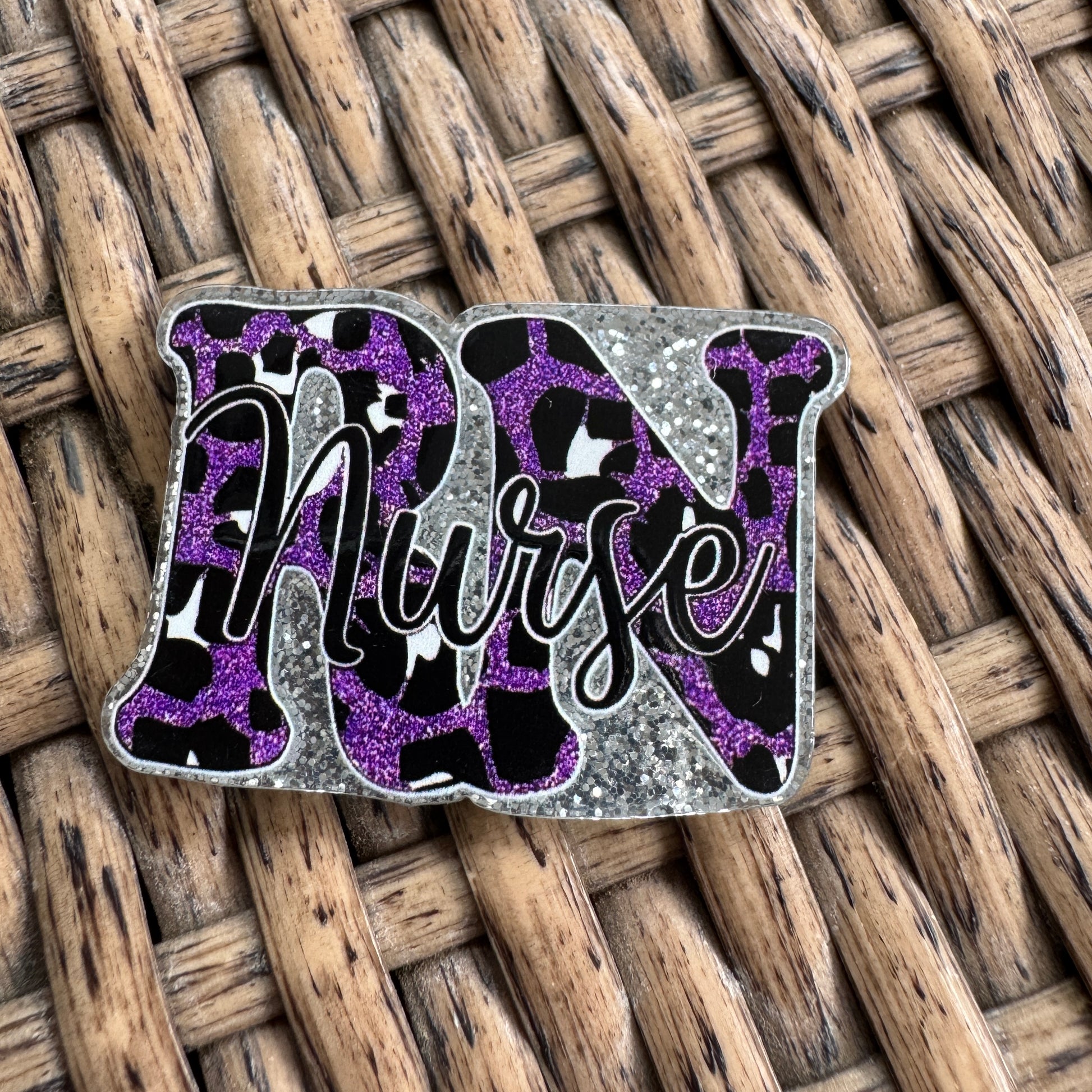 RN Nurse - Purple Glitter Flatback, Single Pc.