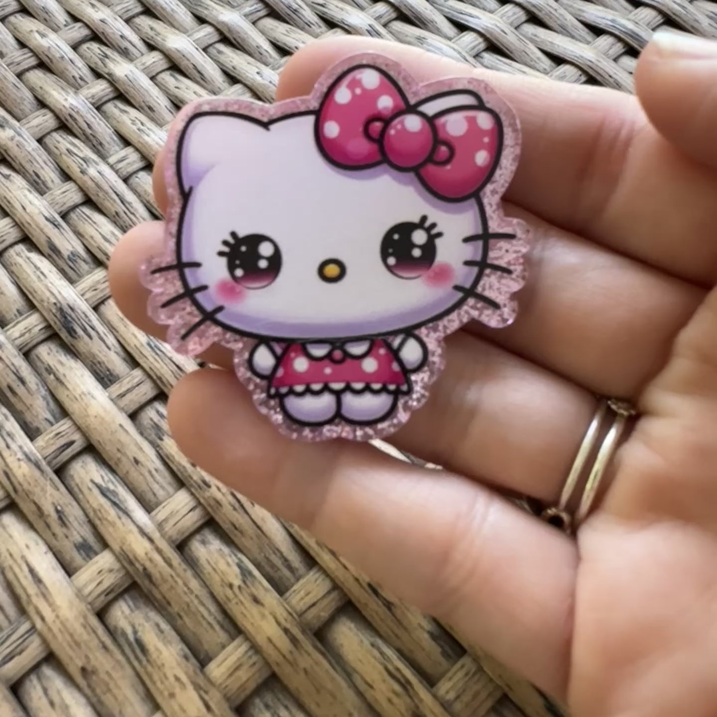 Hello Kitty, Glitter Flatback, Planar, Cabochon, Single Pc