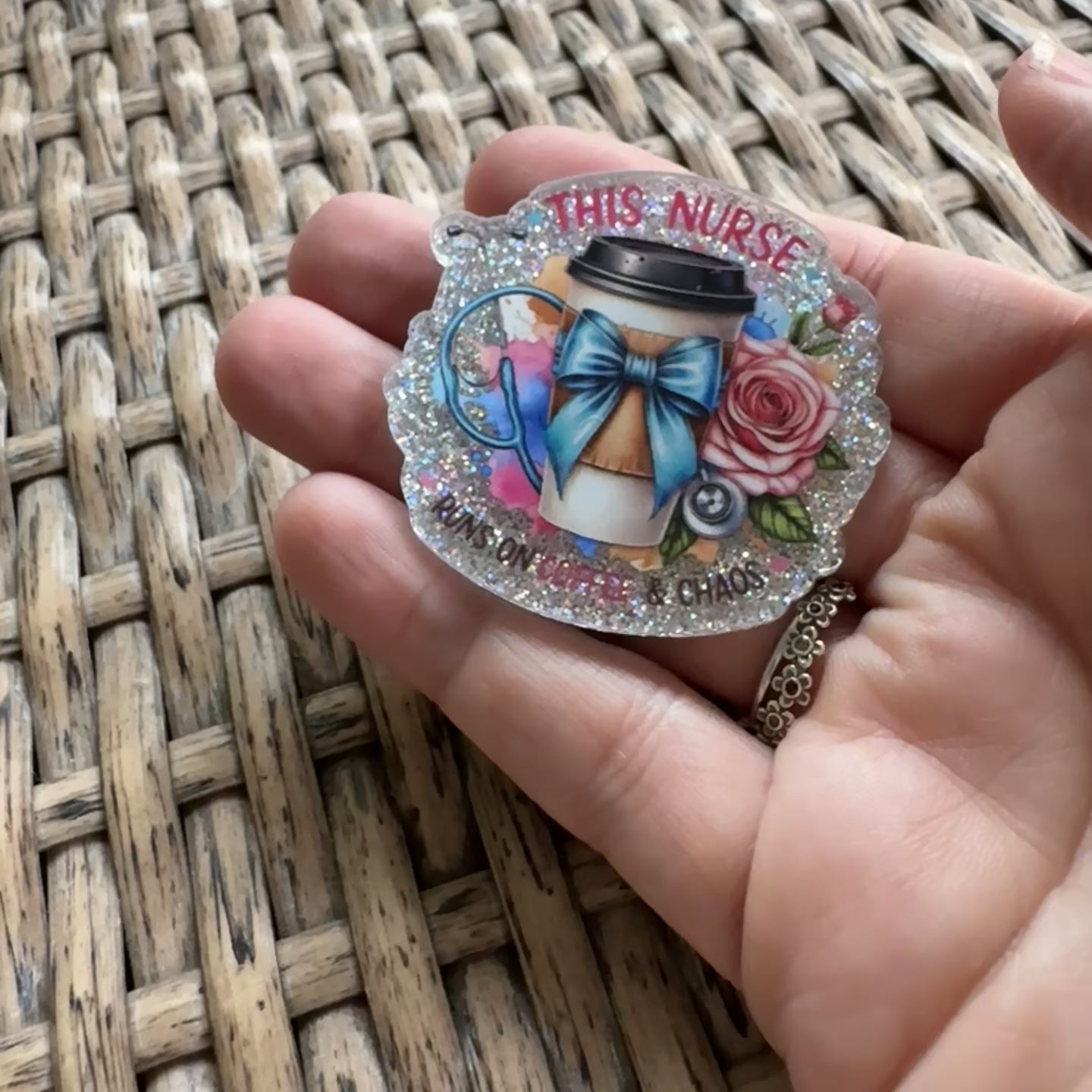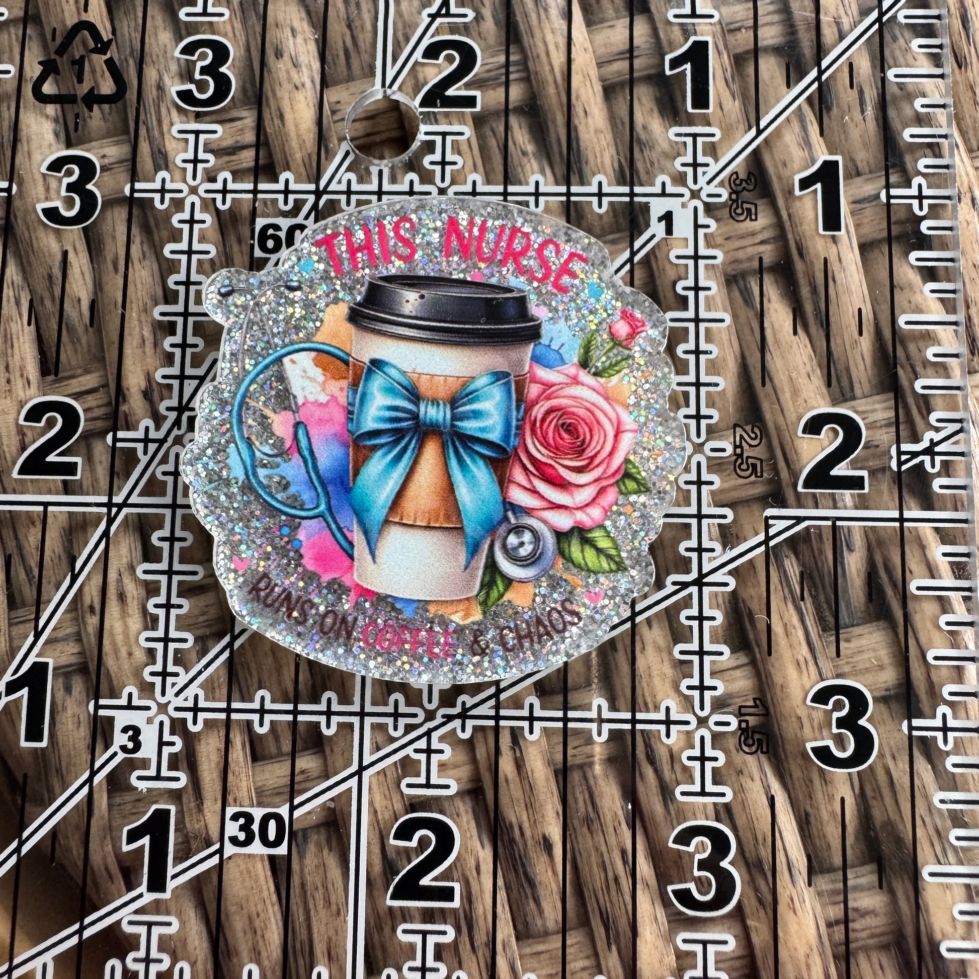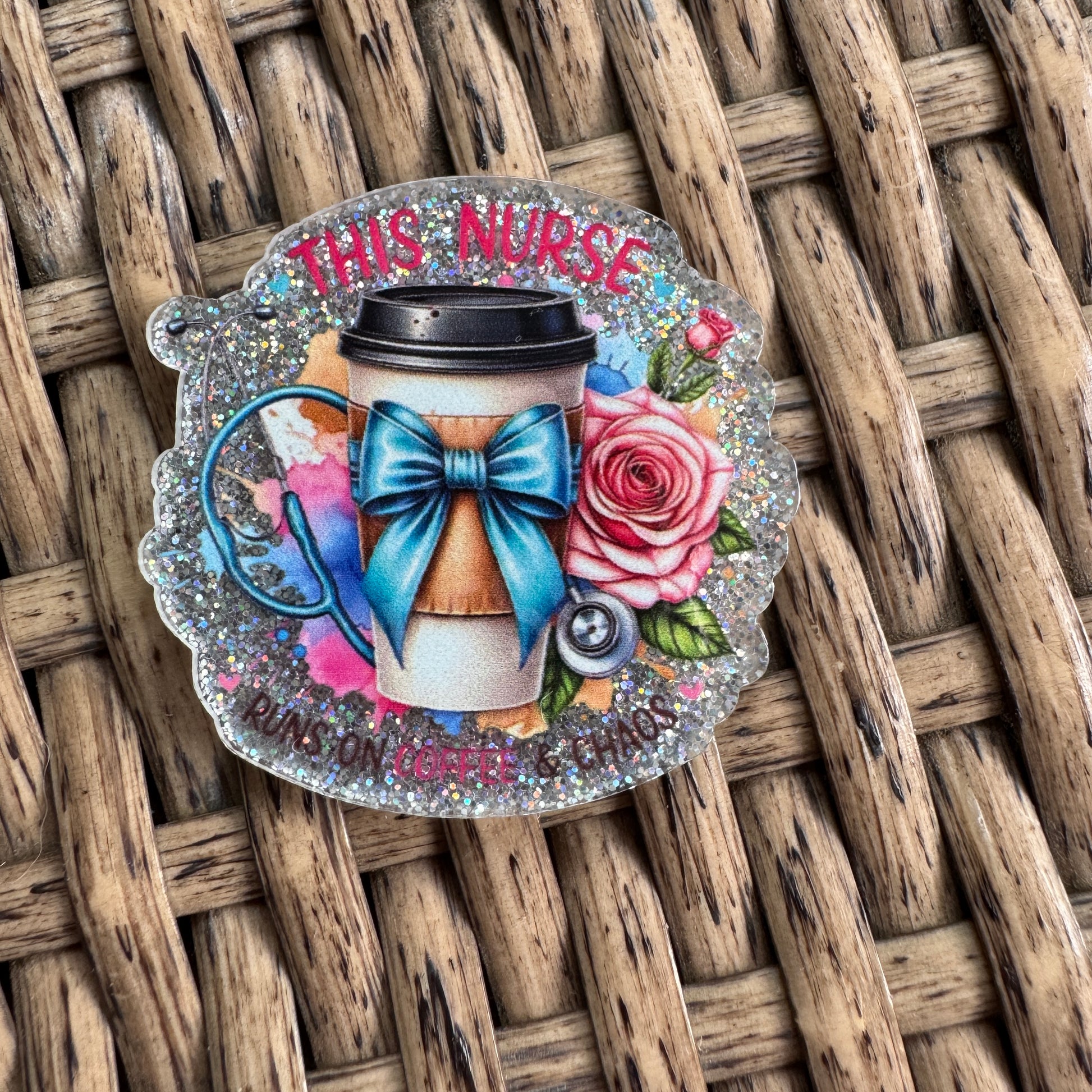 This Nurse Runs on Coffee and Chaos Flatback, Medical Planar, Cabochon, Single Pc.