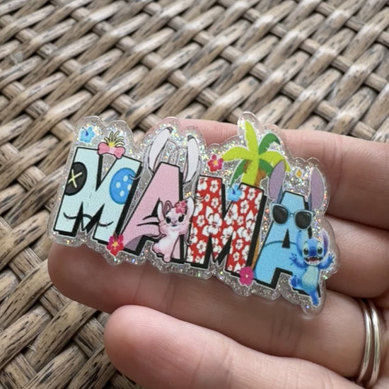 MAMA, lilo and Stitch ,Glitter Flatback, Planar, Cabochon, Single Pc