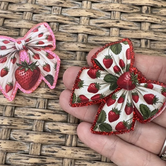 Strawberry Bow, Two Colors to choose from, Glitter Flatback, Planar, Cabochon, Single Pc