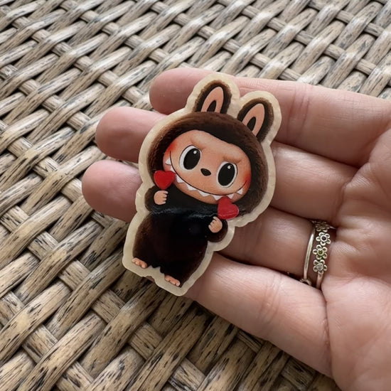 Brown Labubu with hearts, Glitter Flatback, Planar, Cabochon, Single Pc
