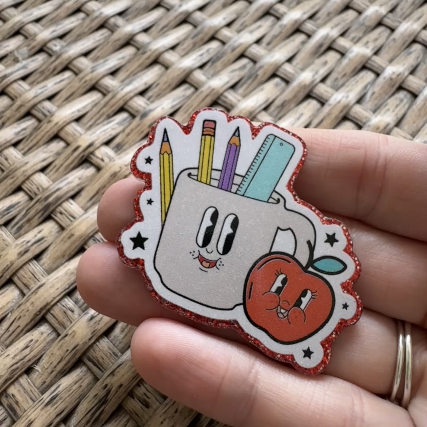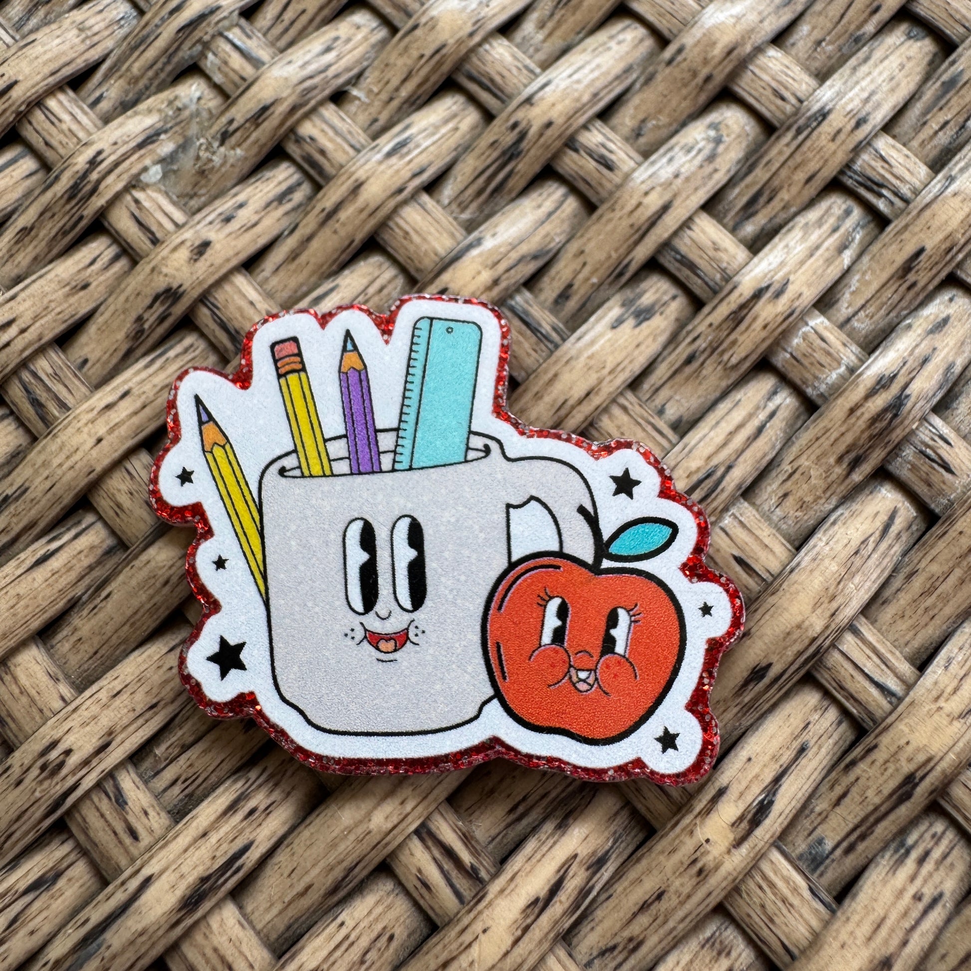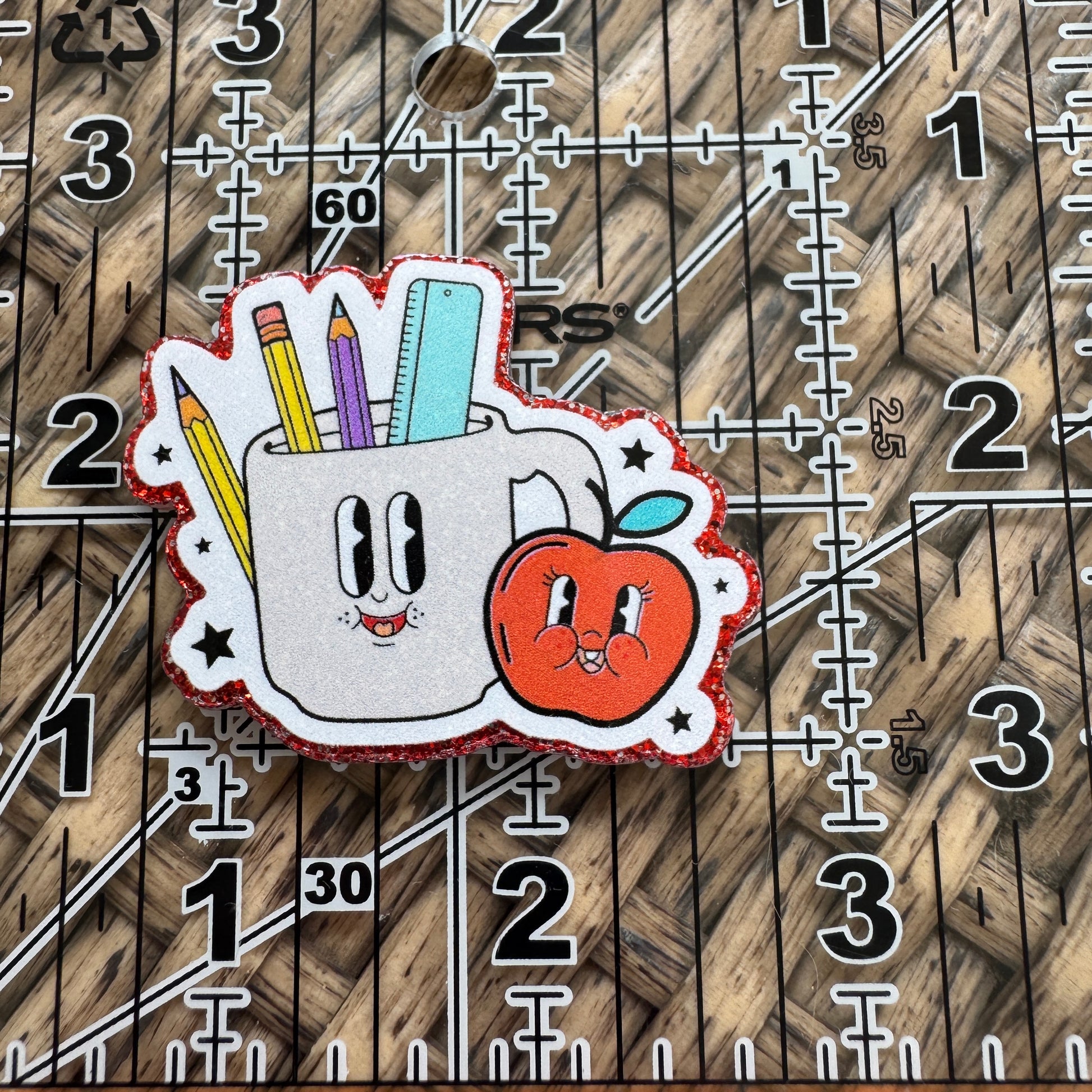 School Supplies Retro, Glitter Flatback, Planar, Cabochon, Single Pc