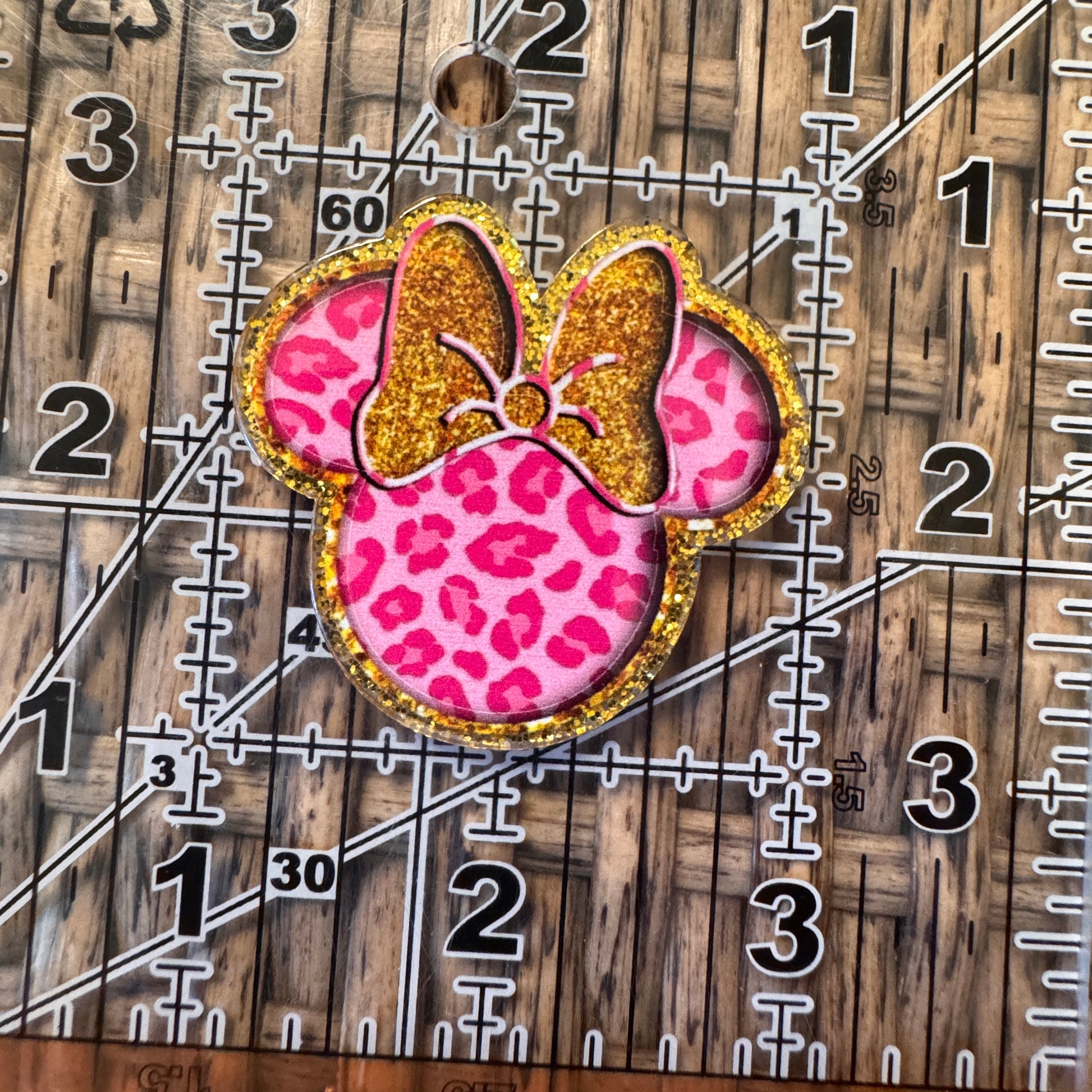 Pink Animal Print M Head Acrylic Flatback, Planar, Cabochon, Single Pc.