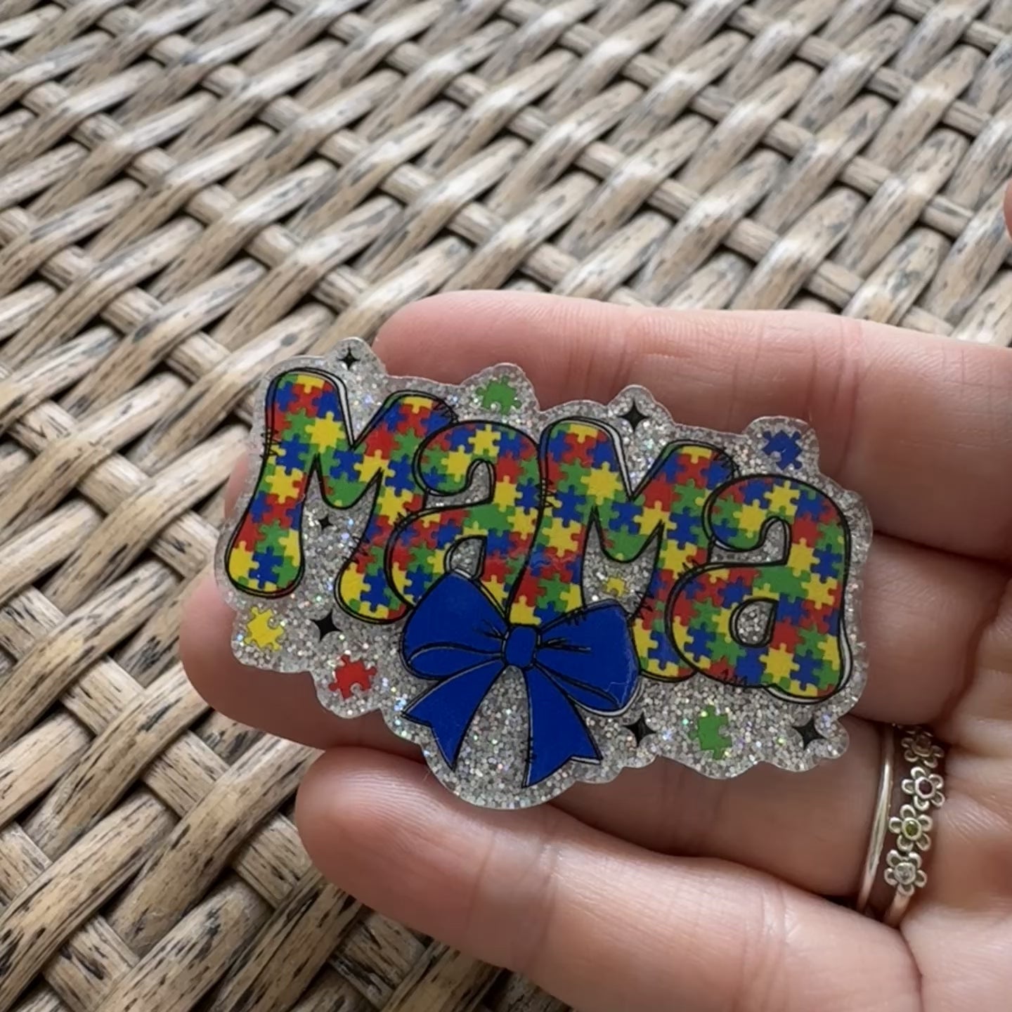 Autism Awarness, Mama, Glitter Flatback, Planar, Cabochon, Single Pc