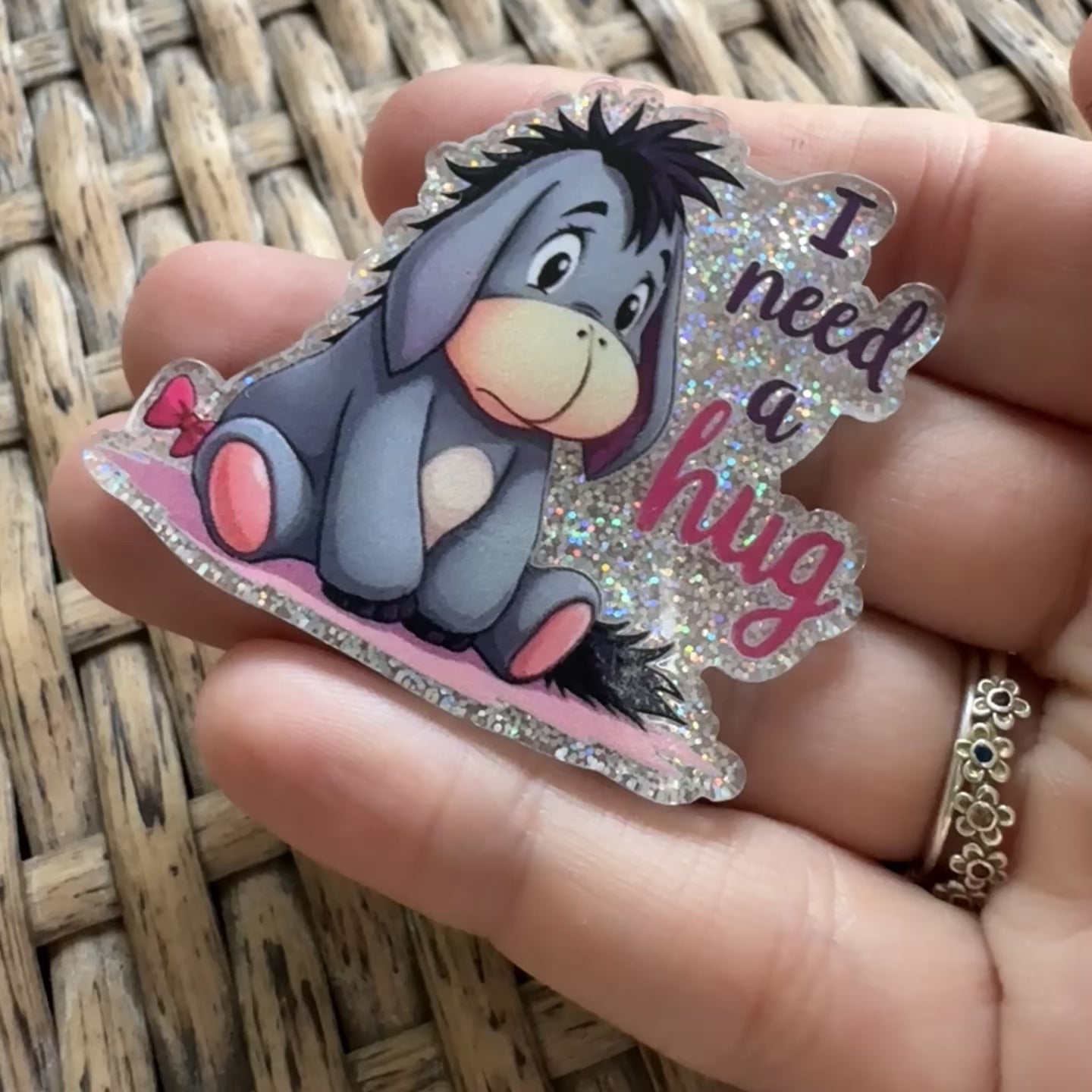 Eeyore I need a hug Cartoon Character Glitter Flatback, Single Pc.