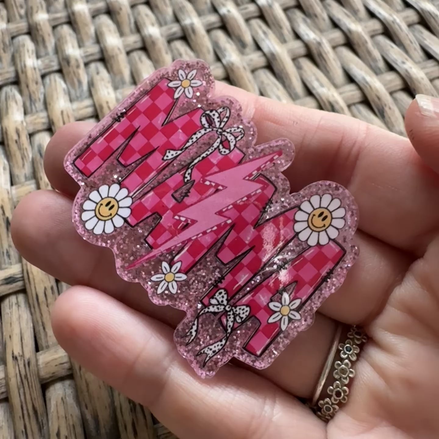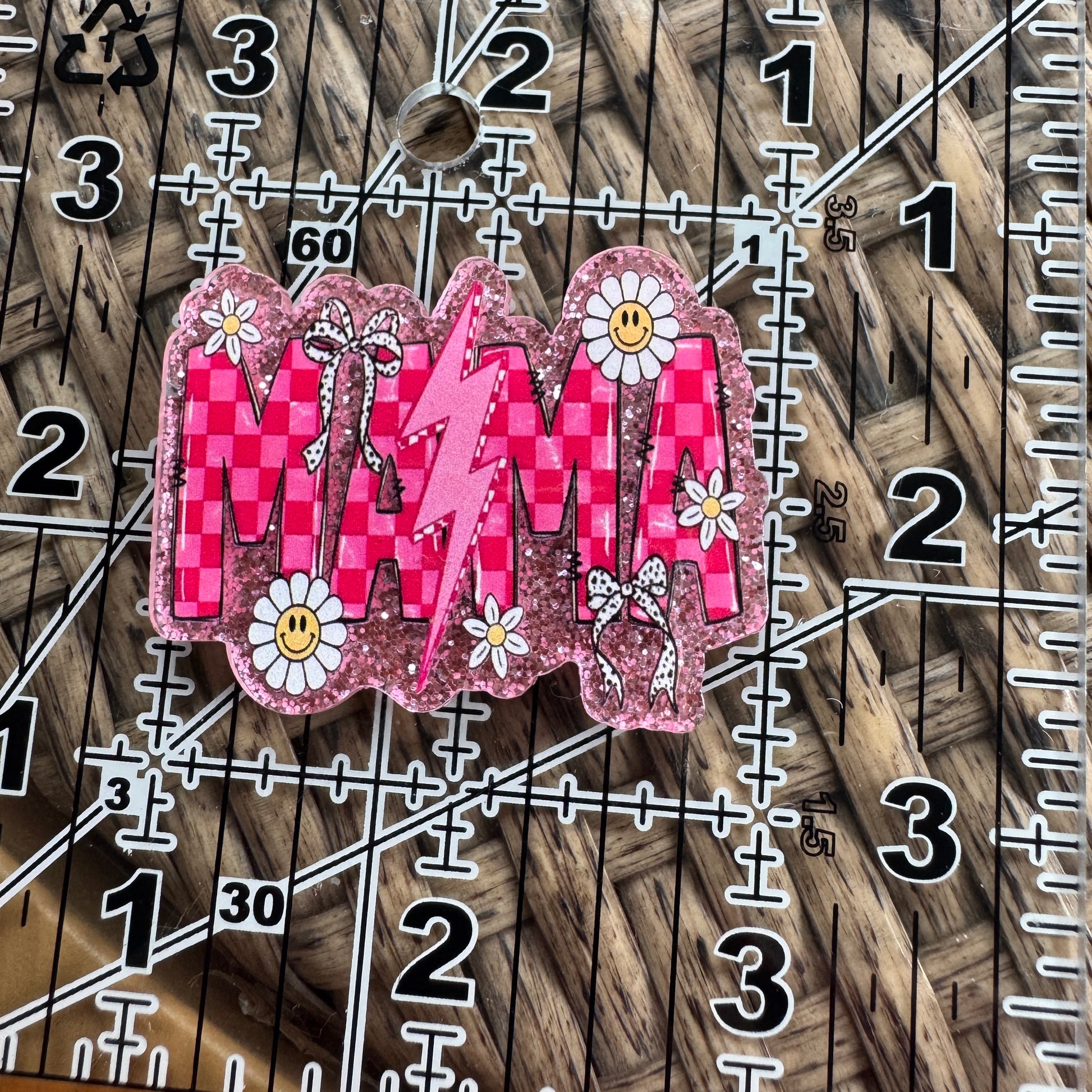 Mama, Checkered, Daisy, Lightning, Pink Flatback, Planar, Cabochon, Single Pc.