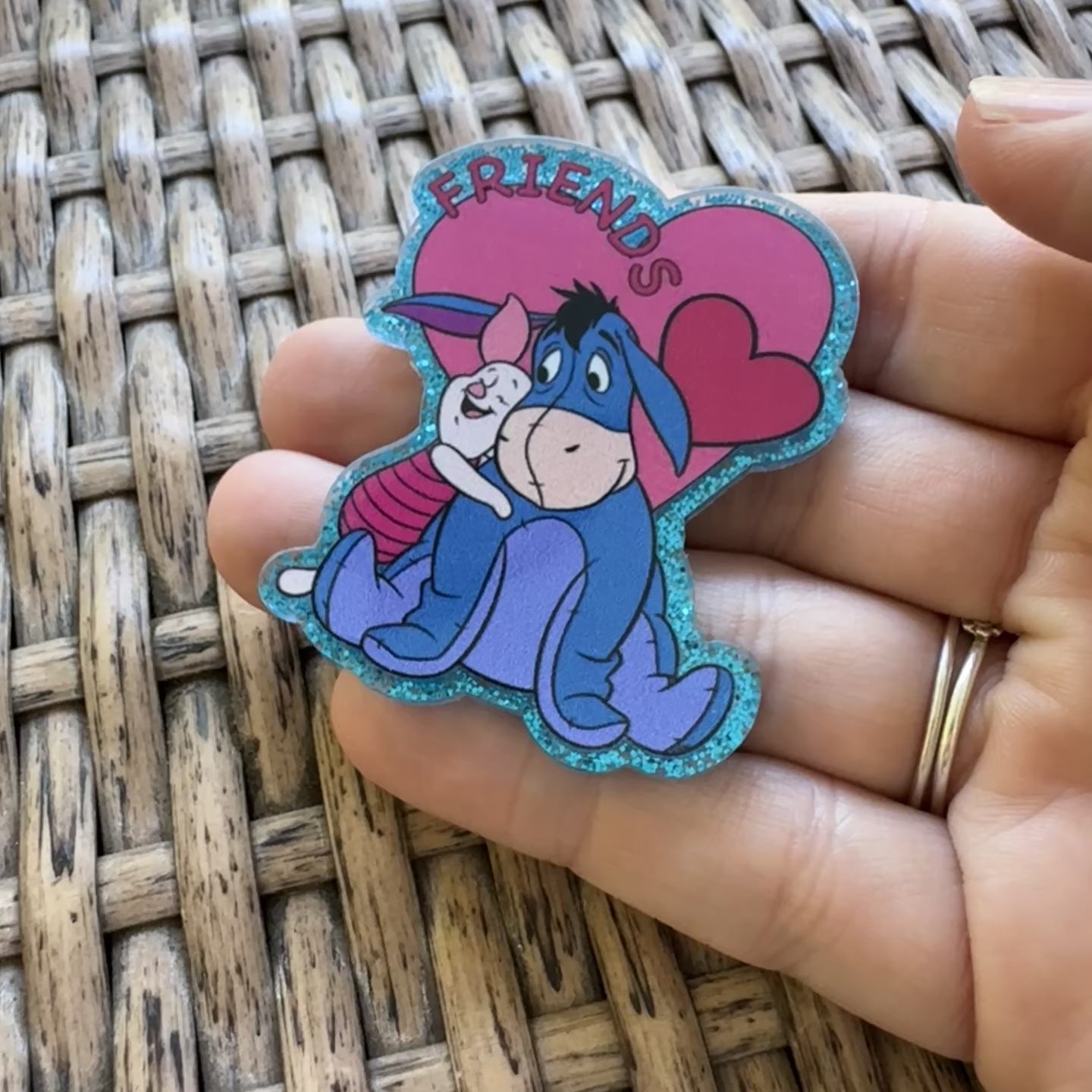 Eeyore and Piglet Acrylic Flatback Planar, Cabochon, Single Pc.